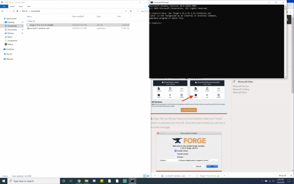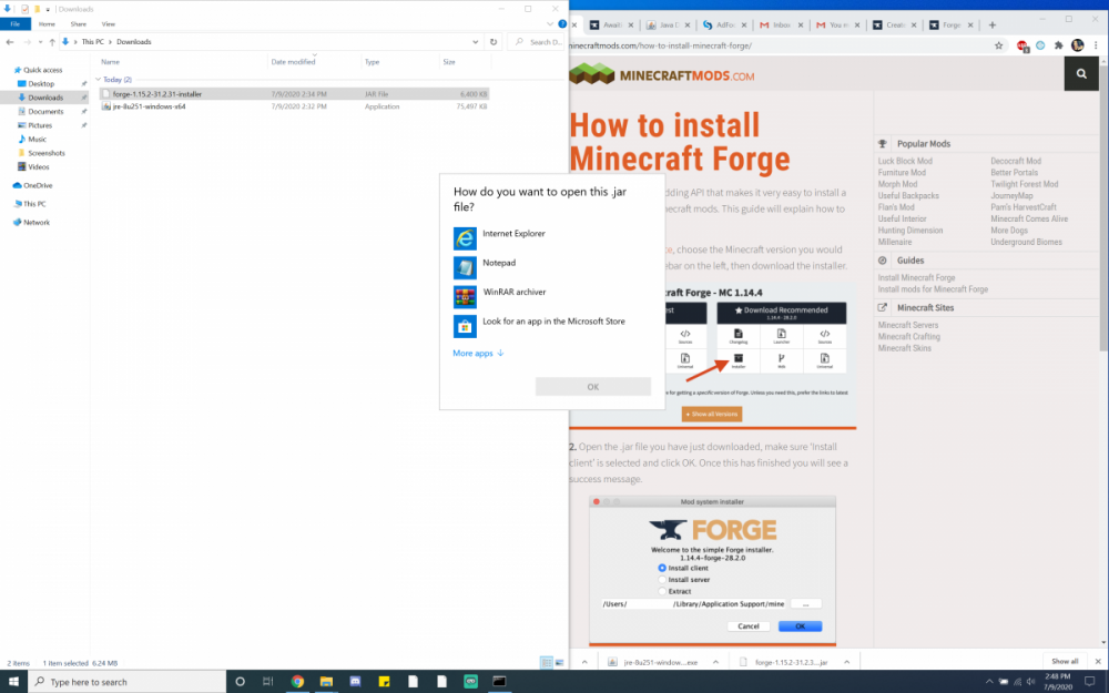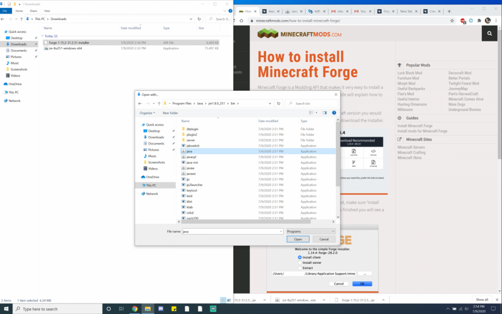 I followed the steps to download the forge installer and I have the installer on my desktop. i already installed all the x64 java first then I tried the others as well ( refer to pic 2 ) . I restarted my computer too and I still can't open the forge installer app. When I double click the file it tells me to choose which program do i have to use to open it (refer to pic 1 ) . i chose to go to the java program in the files and click open and the forge installer still doesn't open (refer to pic 4) . Seriously need some help here. thanks for any input!