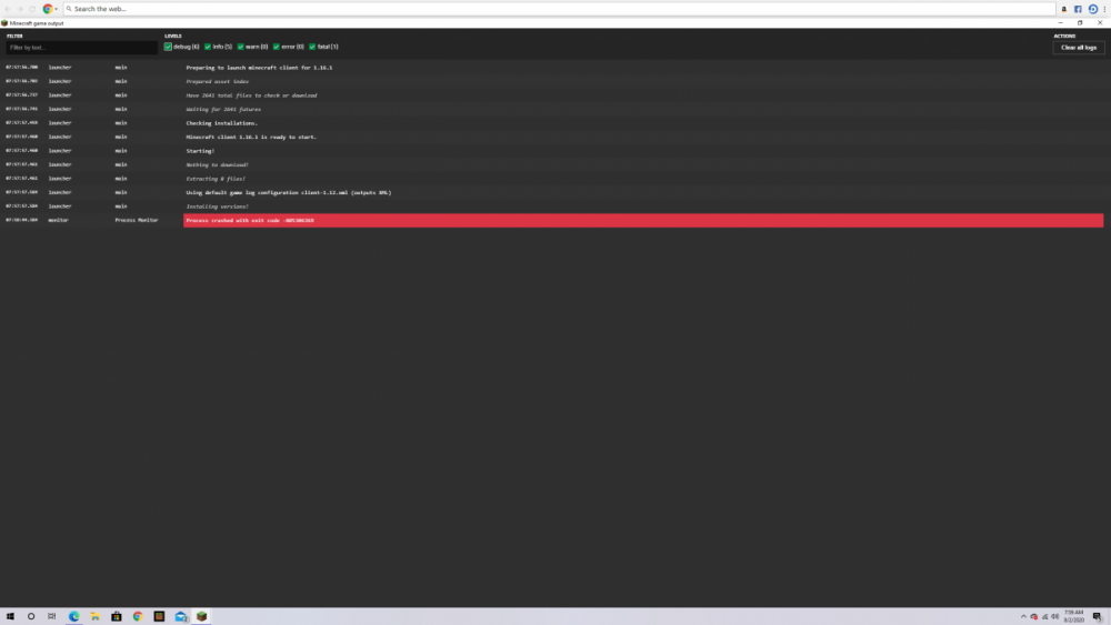 Im playing on Java edition and its my first time using it on my PC. Whenever i try to start minecraft it always says "Not Responding". It doesn't even show the loading screen or anything. It just starts and then stays like that till I close out of it and then on the launcher it says "An unexpected issues occurred and the game crashed. We are sorry for the inconvenience". Then it says in the output "Process crashed with exit code -805306369". I let it go on overnight and I restarted my computer twice.