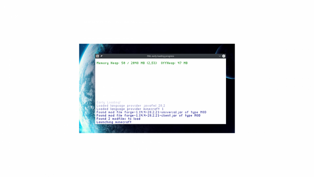 Hi, today i wanted to install Minecraft Forge to version 1.14.4. The installing part was every time successful, but when i tried to start the game it crashes nearly immediately on startup. Before the crash a window appears that looks like this: I tried several forge versions, but every time the same happens. Even when i reinstalled Minecraft and deleted all minecraft-data completely the Error shows up. I searched minimum one hour, but i didn't found any Error like mine. And I didn't installed any mods or ressource packs or things like that. The base-installation is complete clean and the forge installation is complete clean too. I changed nothing to the files. Here some Info: Os: Ubuntu 20.04 java version: openjdk version "11.0.9" 2020-10-20 OpenJDK Runtime Environment (build 11.0.9+11-Ubuntu-0ubuntu1.20.04) OpenJDK 64-Bit Server VM (build 11.0.9+11-Ubuntu-0ubuntu1.20.04, mixed mode, sharing) JVM Arguments: -Xmx2G -XX:+UnlockExperimentalVMOptions -XX:+UseG1GC -XX:G1NewSizePercent=20 -XX:G1ReservePercent=20 -XX:MaxGCPauseMillis=50 -XX:G1HeapRegionSize=32M Tried Forge-Versions: forge 1.14.4-28.2.21 forge 1.14.4-28.2.10 forge 1.14.4-28.2.0 - i used every time the installer debug.log: [03Nov.2020 22:10:57.242] [main/INFO] [cpw.mods.modlauncher.Launcher/MODLAUNCHER]: ModLauncher running: args [--username, Krat0r, --version, 1.14.4-forge-28.2.21, --gameDir, /home/krator/.minecraft, --assetsDir, /home/krator/.minecraft/assets, --assetIndex, 1.14, --uuid, 9d8f28737fd6450080fea8b0cd65ddd0, --accessToken, ❄❄❄❄❄❄❄❄, --userType, mojang, --versionType, release, --launchTarget, fmlclient, --fml.forgeVersion, 28.2.21, --fml.mcVersion, 1.14.4, --fml.forgeGroup, net.minecraftforge, --fml.mcpVersion, 20190829.143755] [03Nov.2020 22:10:57.246] [main/INFO] [cpw.mods.modlauncher.Launcher/MODLAUNCHER]: ModLauncher 4.1.0+62+5bfa59b starting: java version 11.0.9 by Ubuntu [03Nov.2020 22:10:57.266] [main/DEBUG] [cpw.mods.modlauncher.LaunchServiceHandler/MODLAUNCHER]: Found launch services [minecraft,testharness,fmlclient,fmlserver] [03Nov.2020 22:10:57.274] [main/DEBUG] [cpw.mods.modlauncher.NameMappingServiceHandler/MODLAUNCHER]: Found naming services : [] [03Nov.2020 22:10:57.287] [main/DEBUG] [cpw.mods.modlauncher.LaunchPluginHandler/MODLAUNCHER]: Found launch plugins: [eventbus,object_holder_definalize,runtime_enum_extender,capability_inject_definalize,accesstransformer,runtimedistcleaner] [03Nov.2020 22:10:57.295] [main/DEBUG] [cpw.mods.modlauncher.TransformationServicesHandler/MODLAUNCHER]: Discovering transformation services [03Nov.2020 22:10:57.305] [main/DEBUG] [cpw.mods.modlauncher.TransformationServicesHandler/MODLAUNCHER]: Found additional transformation services from discovery services: [] [03Nov.2020 22:10:57.337] [main/DEBUG] [cpw.mods.modlauncher.TransformationServicesHandler/MODLAUNCHER]: Found transformer services : [fml] [03Nov.2020 22:10:57.337] [main/DEBUG] [cpw.mods.modlauncher.TransformationServicesHandler/MODLAUNCHER]: Transformation services loading [03Nov.2020 22:10:57.338] [main/DEBUG] [cpw.mods.modlauncher.TransformationServiceDecorator/MODLAUNCHER]: Loading service fml [03Nov.2020 22:10:57.338] [main/DEBUG] [net.minecraftforge.fml.loading.FMLServiceProvider/]: Injecting tracing printstreams for STDOUT/STDERR. [03Nov.2020 22:10:57.343] [main/DEBUG] [net.minecraftforge.fml.loading.LauncherVersion/CORE]: Found FMLLauncher version 28.2 [03Nov.2020 22:10:57.343] [main/DEBUG] [net.minecraftforge.fml.loading.FMLLoader/CORE]: FML 28.2 loading [03Nov.2020 22:10:57.343] [main/DEBUG] [net.minecraftforge.fml.loading.FMLLoader/CORE]: FML found ModLauncher version : 4.1.0+62+5bfa59b [03Nov.2020 22:10:57.344] [main/DEBUG] [net.minecraftforge.fml.loading.FMLLoader/CORE]: Initializing modjar URL handler [03Nov.2020 22:10:57.344] [main/DEBUG] [net.minecraftforge.fml.loading.FMLLoader/CORE]: FML found AccessTransformer version : 1.0.5+4+02b7b69 [03Nov.2020 22:10:57.345] [main/DEBUG] [net.minecraftforge.fml.loading.FMLLoader/CORE]: FML found EventBus version : 1.0.0+54+3f83a9e [03Nov.2020 22:10:57.345] [main/DEBUG] [net.minecraftforge.fml.loading.FMLLoader/CORE]: Found Runtime Dist Cleaner [03Nov.2020 22:10:57.348] [main/DEBUG] [net.minecraftforge.fml.loading.FMLLoader/CORE]: FML found CoreMod version : 1.0.0+4+e6fed88 [03Nov.2020 22:10:57.349] [main/DEBUG] [net.minecraftforge.fml.loading.FMLLoader/CORE]: Found ForgeSPI package implementation version 1.5.0+6+478760f [03Nov.2020 22:10:57.349] [main/DEBUG] [net.minecraftforge.fml.loading.FMLLoader/CORE]: Found ForgeSPI package specification 3 [03Nov.2020 22:10:57.455] [main/INFO] [net.minecraftforge.fml.loading.FixSSL/CORE]: Added Lets Encrypt root certificates as additional trust [03Nov.2020 22:10:57.456] [main/DEBUG] [cpw.mods.modlauncher.TransformationServiceDecorator/MODLAUNCHER]: Loaded service fml [03Nov.2020 22:10:57.456] [main/DEBUG] [cpw.mods.modlauncher.TransformationServicesHandler/MODLAUNCHER]: Configuring option handling for services [03Nov.2020 22:10:57.464] [main/DEBUG] [cpw.mods.modlauncher.TransformationServicesHandler/MODLAUNCHER]: Transformation services initializing [03Nov.2020 22:10:57.464] [main/DEBUG] [cpw.mods.modlauncher.TransformationServiceDecorator/MODLAUNCHER]: Initializing transformation service fml [03Nov.2020 22:10:57.464] [main/DEBUG] [net.minecraftforge.fml.loading.FMLServiceProvider/CORE]: Setting up basic FML game directories [03Nov.2020 22:10:57.465] [main/DEBUG] [net.minecraftforge.fml.loading.FileUtils/CORE]: Found existing GAMEDIR directory : /home/krator/.minecraft [03Nov.2020 22:10:57.466] [main/DEBUG] [net.minecraftforge.fml.loading.FMLPaths/CORE]: Path GAMEDIR is /home/krator/.minecraft [03Nov.2020 22:10:57.466] [main/DEBUG] [net.minecraftforge.fml.loading.FileUtils/CORE]: Found existing MODSDIR directory : /home/krator/.minecraft/mods [03Nov.2020 22:10:57.466] [main/DEBUG] [net.minecraftforge.fml.loading.FMLPaths/CORE]: Path MODSDIR is /home/krator/.minecraft/mods [03Nov.2020 22:10:57.466] [main
