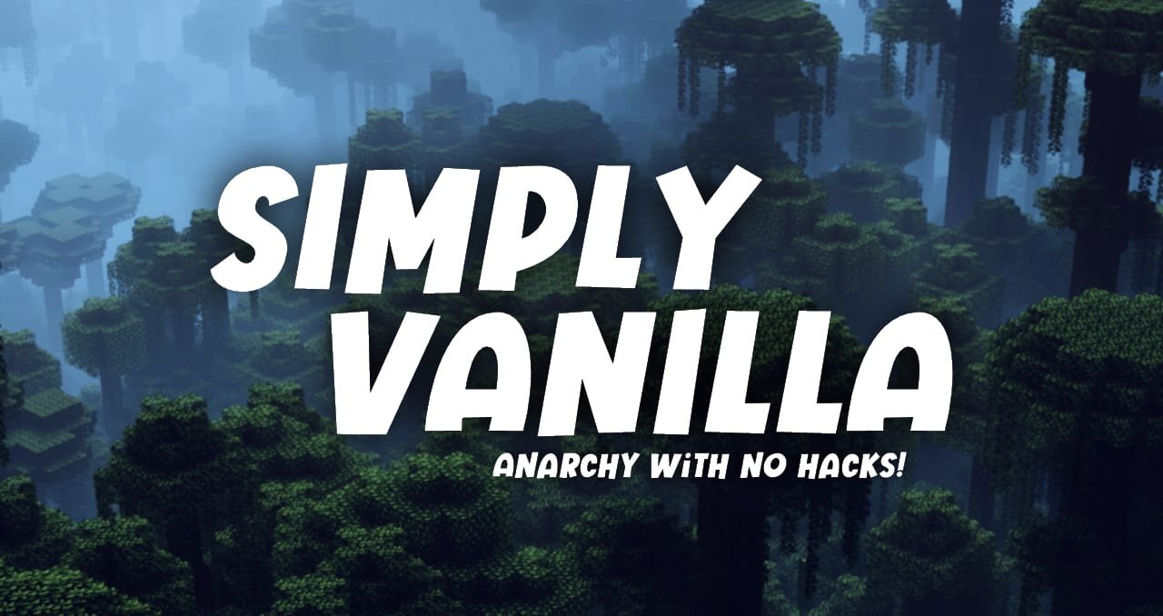 1. Simply Vanilla is an Anarchy Minecraft Server with NO hacking allowed! We have been online since 2019 with a strong discord community and 10-30 active players. Vanilla world-borders and accessible Nether-roof. Escape spawn, survive your first night, make allies, betray and conquer other bases! IP: simplyvanilla.net Discord: discord.gg/dP7SqPF Website: www.simplyvanilla.net Wiki (community driven): https://simplyvanilla.miraheze.org/wiki/Main_Page We are hosted in Netherlands which should give all players in Europe and North America a fair ping. JOIN us now!