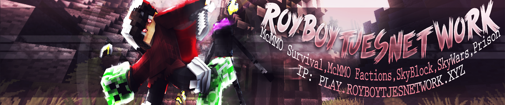 1. Hello minecraft players, How do you like our new MineCraft server. We want your feedback with what is good and what can better. We got McMMO Survival, McMMO Factions, Prison, SkyBlock and Hide & Seek. Please let us know what you thinking about it Ip: play.royboytjesnetwork.xyz Website: RoyboytjesNetwork Prison McMMO Survival McMMO Factions SkyBlock Hide & Seek