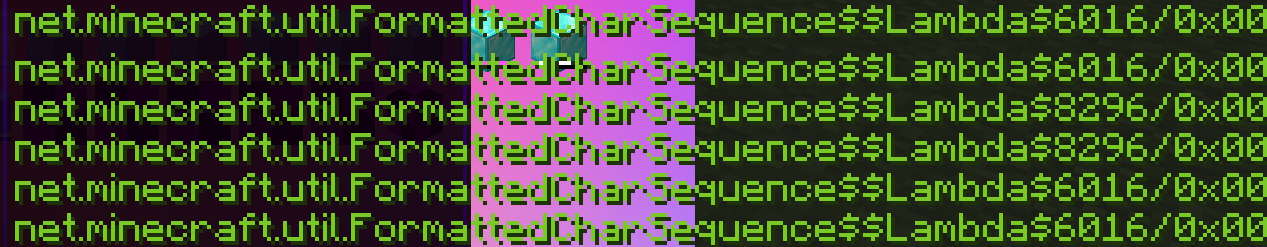 Posted July 2, 20232 yr I override the drawInBatch method in my custom font renderer, and then I use the following code to return the font instance. @Override public void initializeClient(Consumer<IClientItemExtensions> consumer) { consumer.accept(new IClientItemExtensions() { @Override public @NotNull Font getFont(ItemStack stack, FontContext context) { return SuperFont.INSTANCE; } }); } My code is as follows. public class SuperFont extends Font { private float tick = 0.0f; public SuperFont(Function<ResourceLocation, FontSet> p_243253_, boolean p_243245_) { super(p_243253_, p_243245_); MinecraftForge.EVENT_BUS.register(this); } @SubscribeEvent public void tick(TickEvent.ClientTickEvent evt) { if (evt.phase == TickEvent.Phase.START) { this.tick += 1.0f; if (this.tick >= 720.0f) { this.tick = 0.0f; } } } @Override public int drawInBatch(@NotNull FormattedCharSequence formattedCharSequence, float x, float y, int color, boolean boolean1, @NotNull Matrix4f matrix4f, @NotNull MultiBufferSource multiBufferSource, boolean boolean2, int int1, int int2) { float the_step = 0.0f; String text = formattedCharSequence.toString(); text = text.replaceAll("§[0-9a-fA-Fklmnor]", ""); char[] array_char = text.toCharArray(); for (char c : array_char) { String s = String.valueOf(c); int tc = Color.HSBtoRGB(this.nextColorHue(the_step) / 100.0f, 0.8f, 0.8f); super.drawInBatch(s, x, y, tc, boolean1, matrix4f, multiBufferSource, boolean2, int1, int2); x += (float) this.width(String.valueOf(c)); the_step += 1.0f; } return (int)x; } public float nextColorHue(float the_step) { float tick = (this.tick + the_step) % 720.0f; if (tick >= 360.0f) { return 720.0f - tick; } return tick; } public static final SuperFont INSTANCE = new SuperFont(Minecraft.getInstance().fontManager.createFont().fonts, true); } I also used Access Transformer. public-f net.minecraft.client.Minecraft f_91045_ # fontManager But I get it in the game. https://upload.cc/i1/2023/07/02/LDePEB.png I checked many posts and questions, as well as official documentation, but I couldn't find a class or method that can convert types.