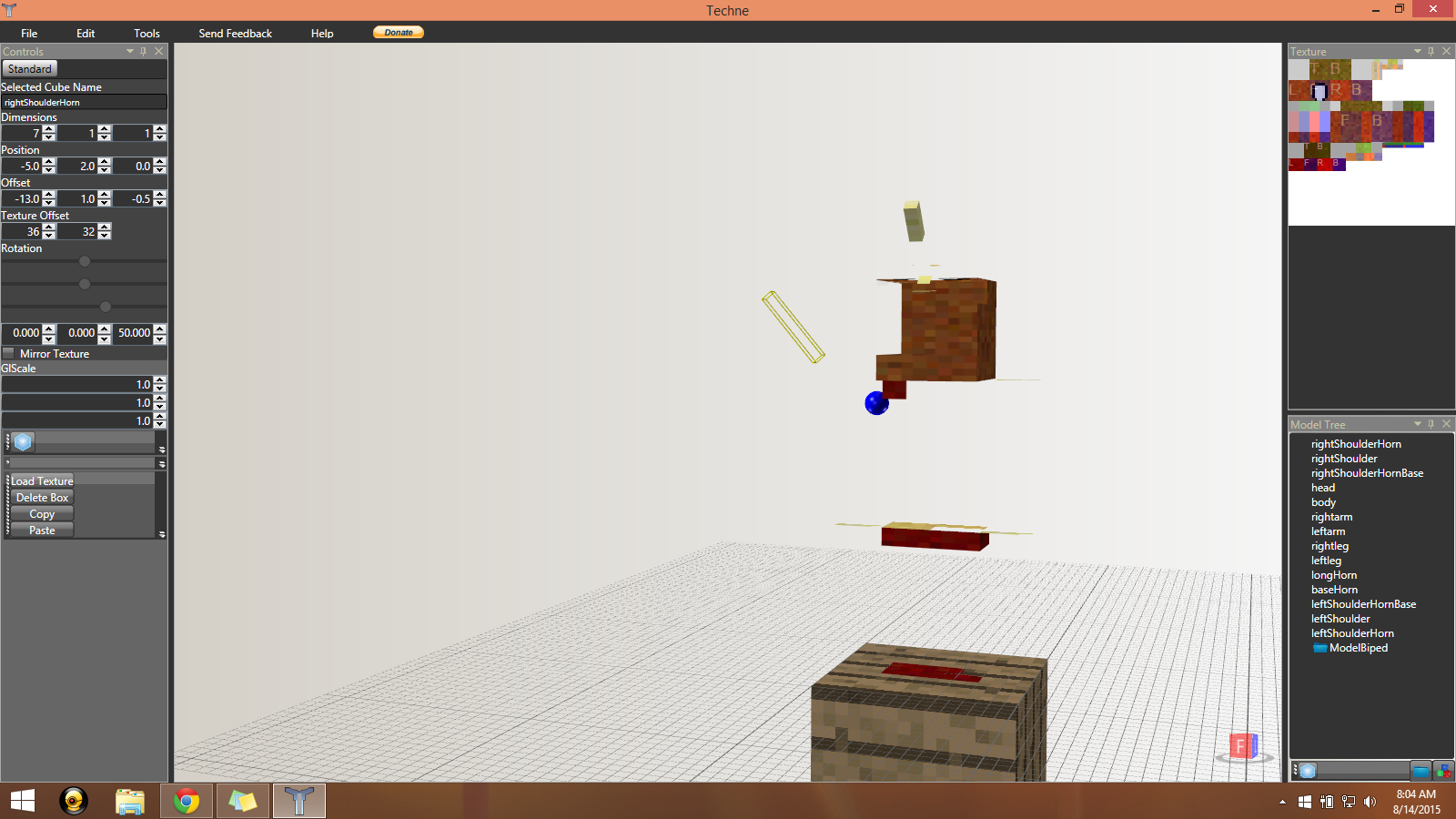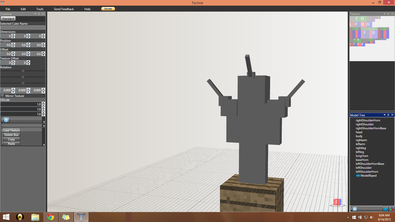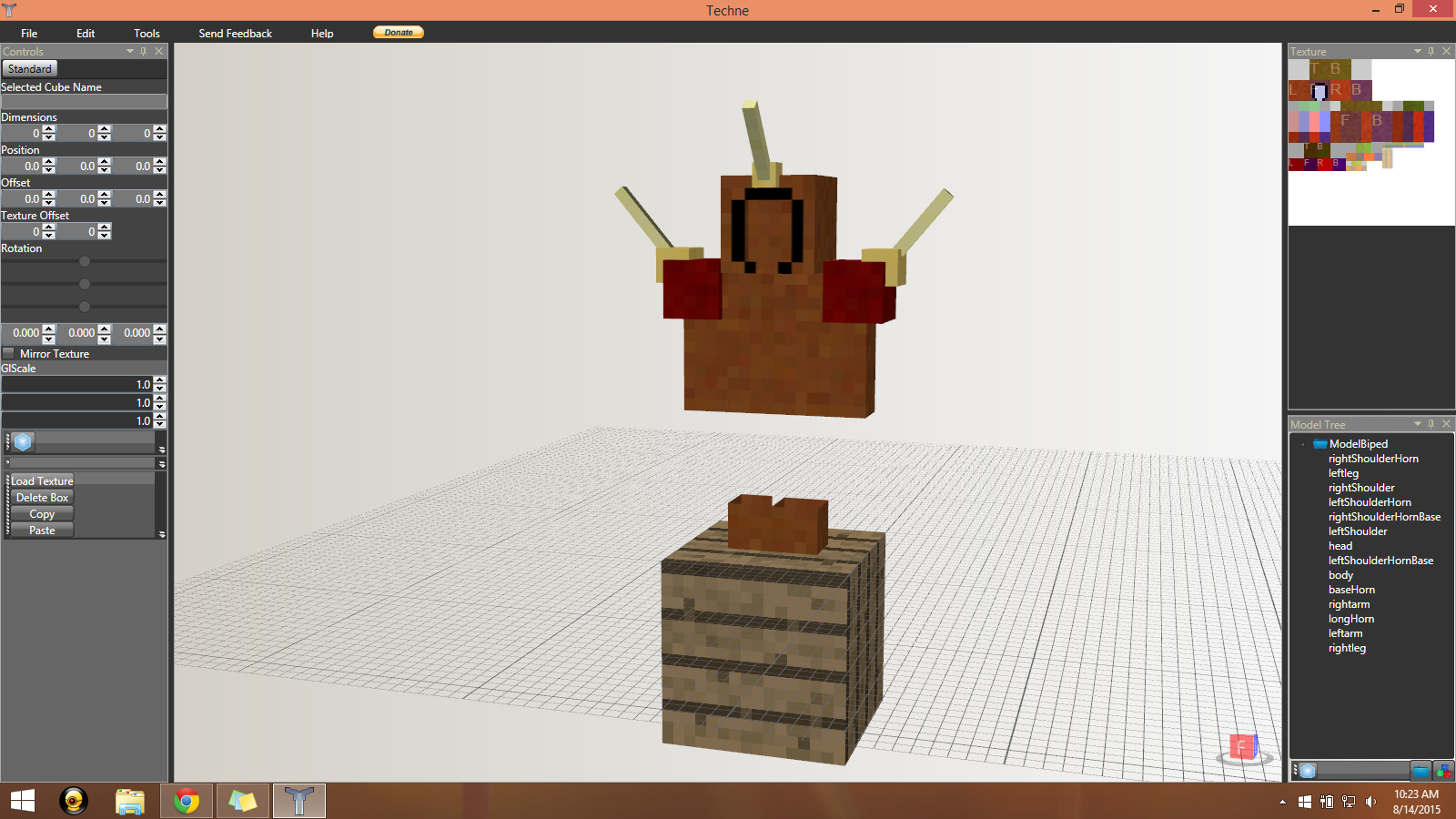 August 14, 201510 yr Author I tried that, but it put some of my parts' textures outside the space. I did manage to solve this, though. I moved the map-areas for the head's added "horn" blocks down, and left the top 64*32 as a plain "Biped" map. After re-loading Techne, it worked. http://i1200.photobucket.com/albums/bb321/Exo594/Screenshot%2011_zpsrizbtg4y.png[/img] Thank you for your input, though. I'll be attempting to make use of some of your tutorials for the next step.