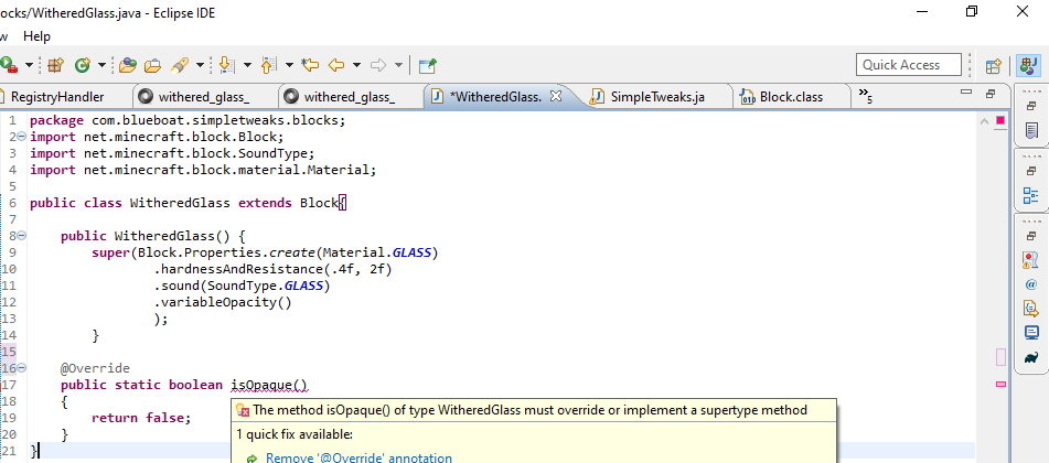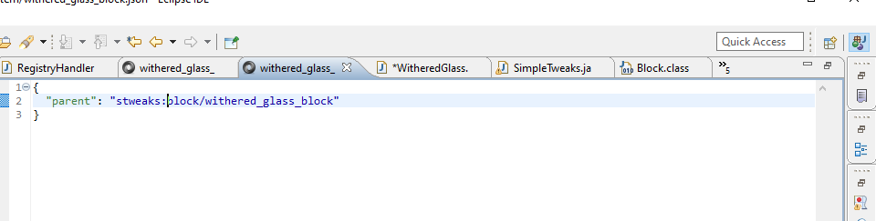 Along with that the blockItem is not loading it's texture. I have formatted the .json's exactly like the game. Also I copied and pasted the name of the block.198344291_Screenshot(13).png.d9591db1f31aedd64a3a5f52bae3510d.png